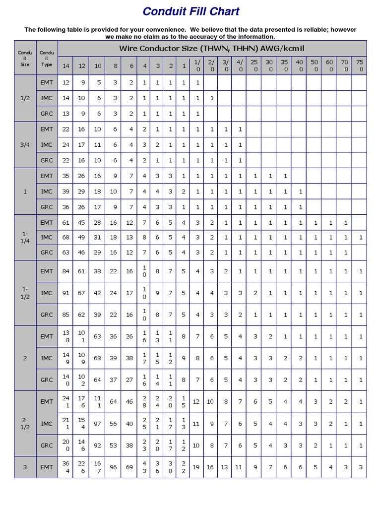 Conduit Fill Chart Gallery Of Chart 2019